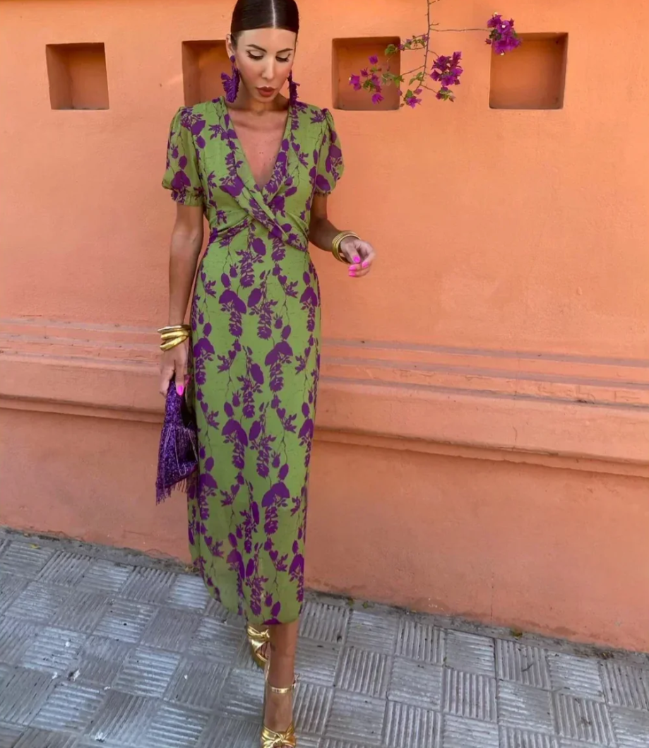 Discover the perfect blend of style and comfort in the ALICIA midi dress. This stunning dress features a unique pattern and elegant details, ideal for a variety of occasions. It's our bestseller of the season!