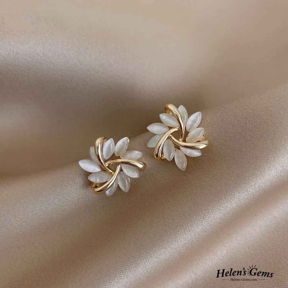 Elegant and Exquisite Opal Petal Circle Stud Earrings in Gold